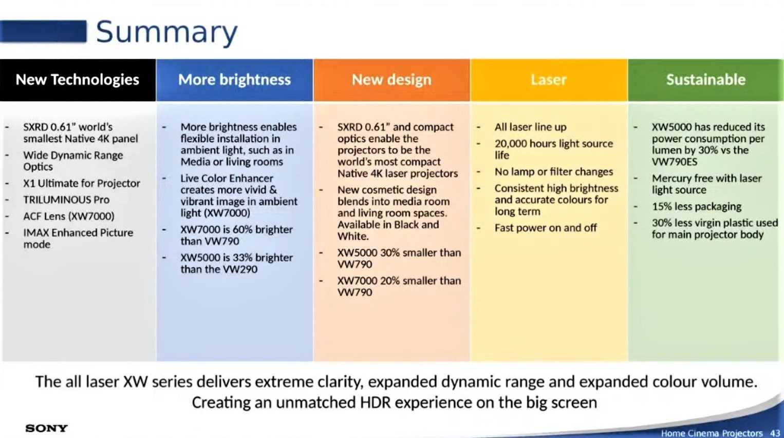 The new VPL-XW7000ES, VPL-XW6000ES and VPL-XW5000ES models are envisioned to serve as the next generation of 4K SXRD lamp, FHD SXRD lamp, 4K SXRD UST laser and 4K SXRD laser Home Cinema projectors, excluding the GTZ380 which remains in the line-up.