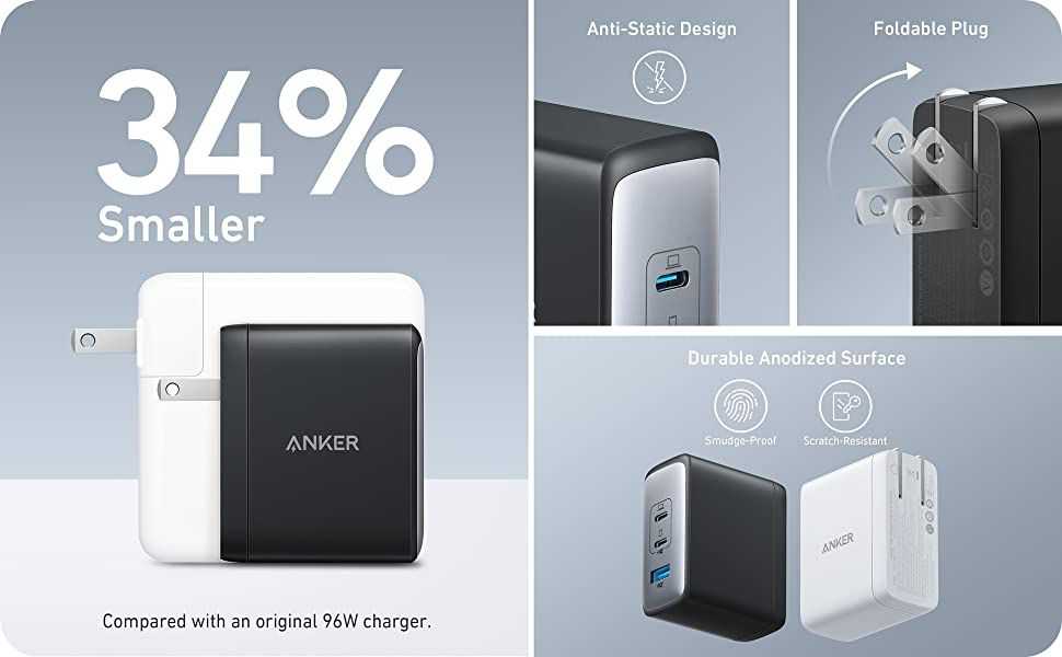Ο φορτιστής είναι 34% μικρότερος από τοβ Apple 96W MacBook power brick φορτιστή και έχει τεχνολογία GaN II μέσα. Με νέες καλωδιώσεις, stacked σχεδιασμό και 100% αύξηση στη συχνότητα λειτουργίας.