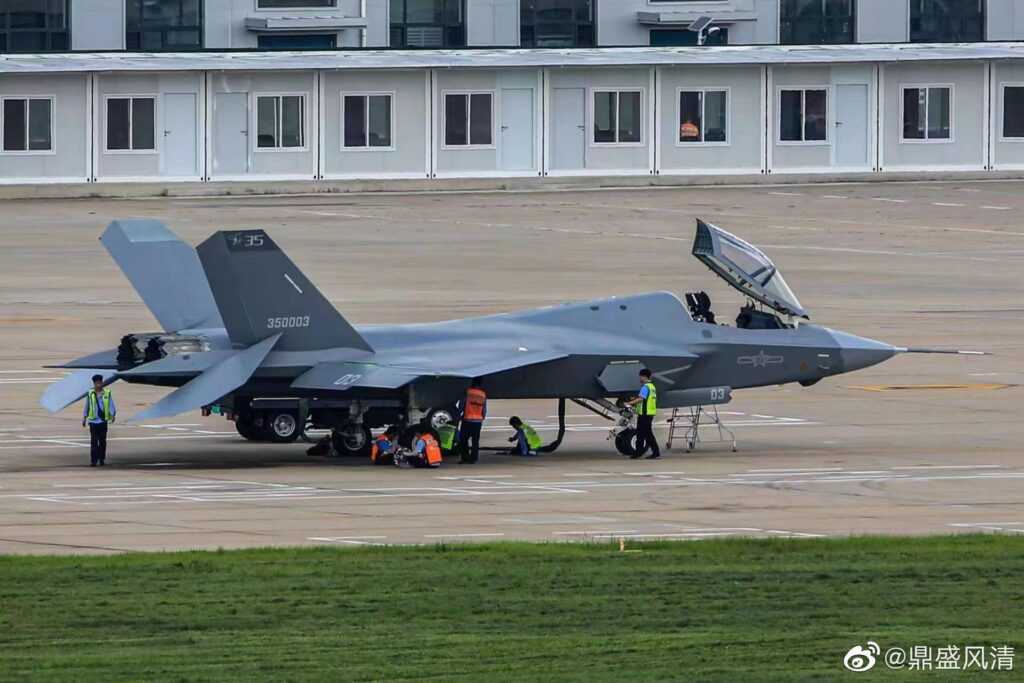 …πρωτότυπο του μοντέλου J-35, το δεύτερο που ίπταται. Με αριθμό 350003, δεν αποκαλύπτεται μόνο ένα νέο μοντέλο δοκιμών εδώ αλλά και η πρώτη καθαρή φωτογραφία ενός J-35.