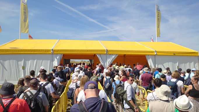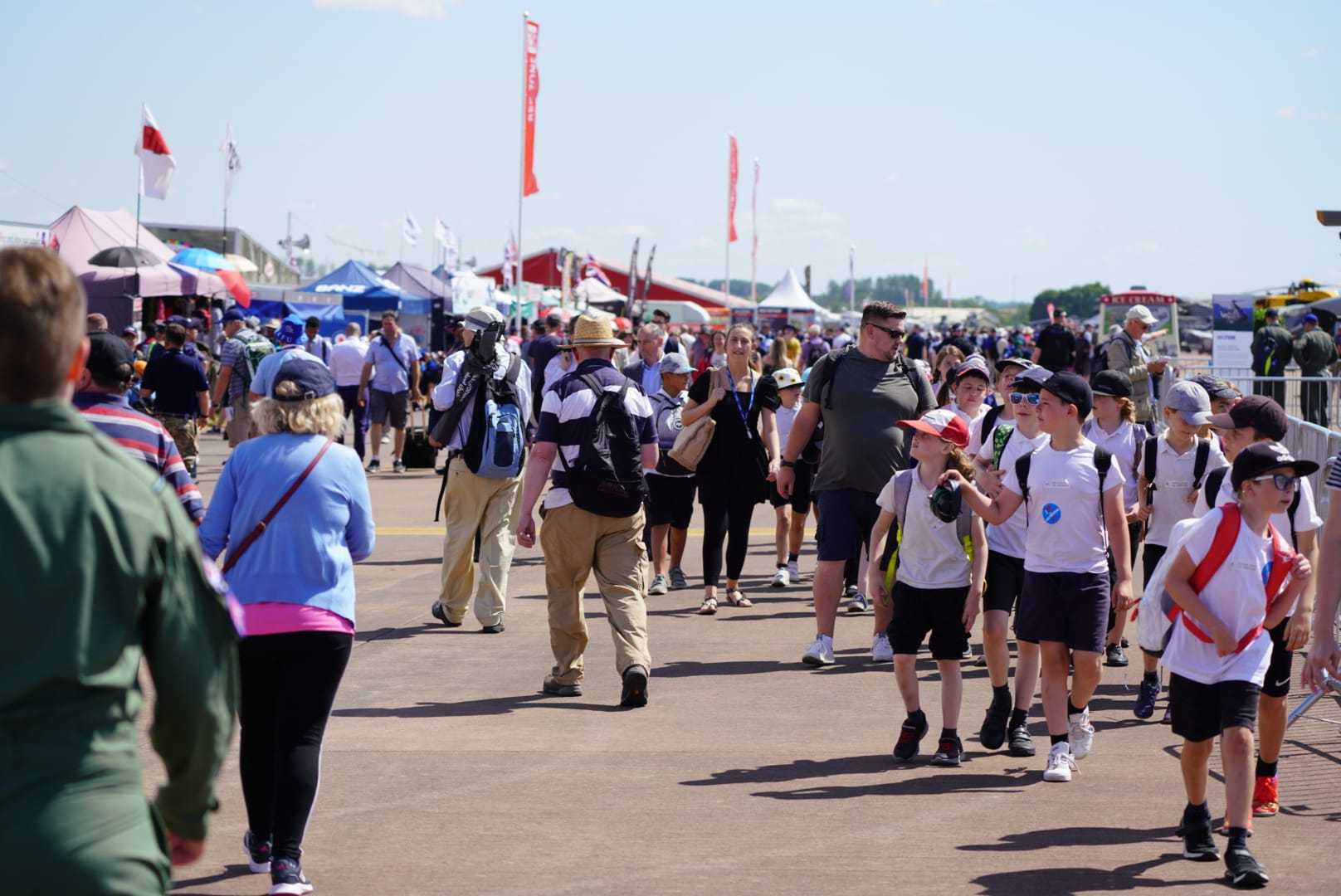 Από τα οχήματά τους, οι δεκάδες χιλιάδες επισκέπτες μετακινούνται στην είσοδο του αεροδρομίου, όπου θα δείξουν το πολύτιμο εισιτήριό τους. Μικροί και μεγάλοι, αφού περάσουν από έλεγχο, θα ξεχυθούν σε μια τεράστια έκταση γεμάτη με σταθμευμένα αεροσκάφη και ελικόπτερα παντός είδους, ενώ πάνω από το κεφάλι τους βρυχώνται πανίσχυροι αεροπορικοί κινητήρες και ομάδες από ιπτάμενα μέσα σε εντυπωσιακές εναέριες χορογραφίες «ζωγραφίζουν» με χρωματιστό καπνό τον ουρανό. Μέσα στο αεροδρόμιο και κάτω από τον -αναπάντεχα για το Ηνωμένο Βασίλειο- καταγάλανο ουρανό, περπατούν και χιλιάδες μικρά παιδιά, που έχουν έρθει με τις δασκάλες τους, όπως και εκατοντάδες οικογένειες που έχουν φτάσει με εξοπλισμό που θα ζήλευε και ο πιο φανατικός του κάμπινγκ, για να περάσουν μια ολόκληρη ημέρα στο αεροδρόμιο.
