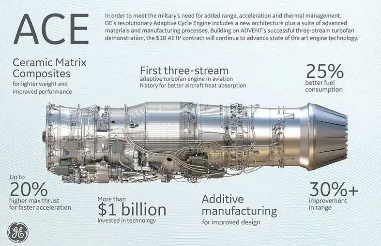 …επιτυχία μάλιστα έναν νέο XA100 τεχνολογίας adaptive cycle κινητήρα για την Αμερικανική Αεροπορία. Η δοκιμή έγινε στο Arnold Engineering Development Complex (AEDC) και μετά τις δοκιμές στο AEDC η GE λέει πως ολοκλήρωσε με επιτυχία ένα δεύτερο τμήμα της δοκιμασίας του προγράμματος που ονομάζεται Air Force Adaptive Engine Transition Program (AETP).