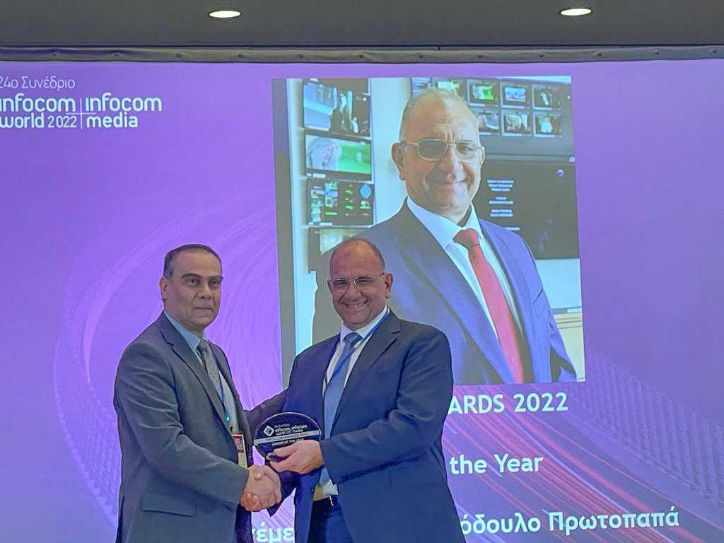 …Leader of the Year 2022 στην Ελλάδα, κατά τη διάρκεια των εργασιών του 24ου Συνεδρίου Infocom World 2022 που πραγματοποιείται αυτές τις μέρες στην Αθήνα, αναγνωρίζοντας την πολυετή προσφορά του στο Ελληνικό Τηλεπικοινωνιακό οικοσύστημα, αλλά και τη συμβολή του στην αναγνώριση της Hellas Sat στην παγκόσμια δορυφορική αγορά ως μια ταχεία αναπτυσσόμενη εταιρεία με πολυσχιδή δραστηριότητα σε διαφόρους τομείς τεχνολογιών αιχμής, πέραν της διαστημικής τεχνολογίας.