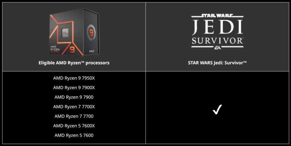 H AMD ανακοίνωσε ένα νέο Ryzen Game Bundle. Στο σετ υπάρχει το Star Wars Jedi: Survivor game μαζί με Ryzen 7000 series ‘επιλεγμένους’ επεξεργαστές.