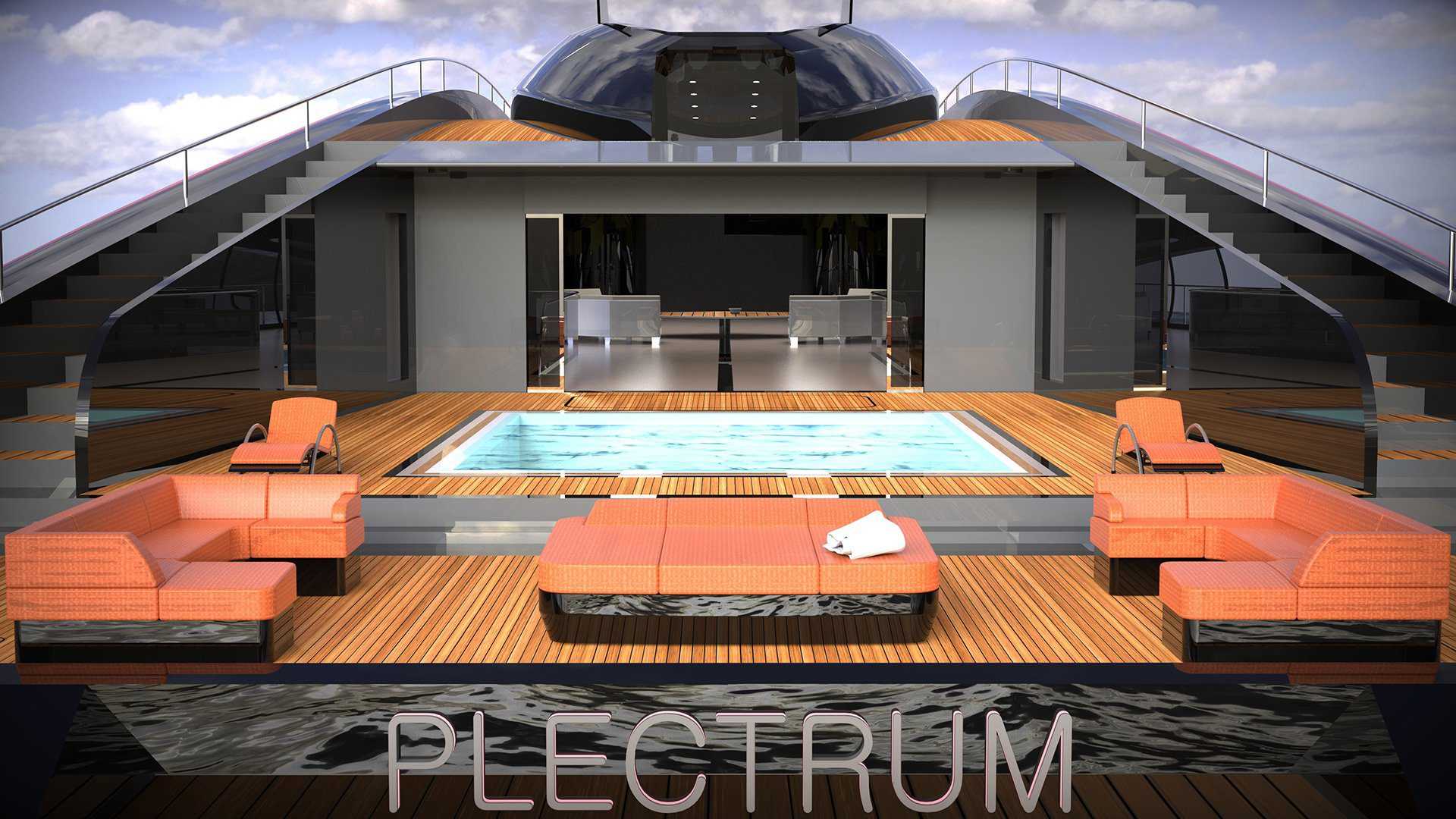 Το σκάφος θα έχει μια πολυτελή κίνηση πάνω στο νερό ενώ μέσα θα διαθέτει τεράστιους χώρους, έξι υπνοδωμάτια, μια καμπίνα του ιδιοκτήτη, και deck με πισίνα και lounge όπως και γκαράζ για τα παιχνίδια, τα tender αλλά και ελικοδρόμιο.