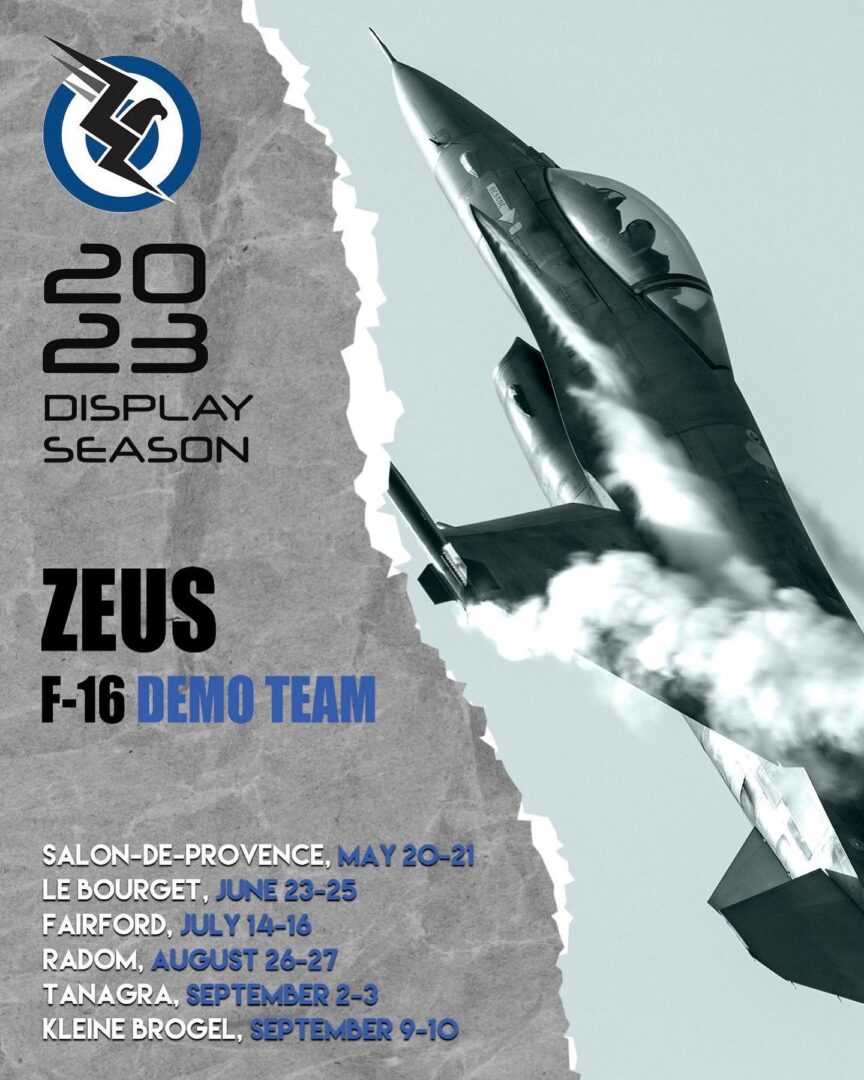 Σε ότι αφορά τις εμφανίσεις εκτός Ελλάδας, ο Δίας θα εμφανιστεί στο Salon De Provence, στο Le Bourget, στο Fairford, στο Radom, στην Τανάγρα και στο Kleine Brogel.