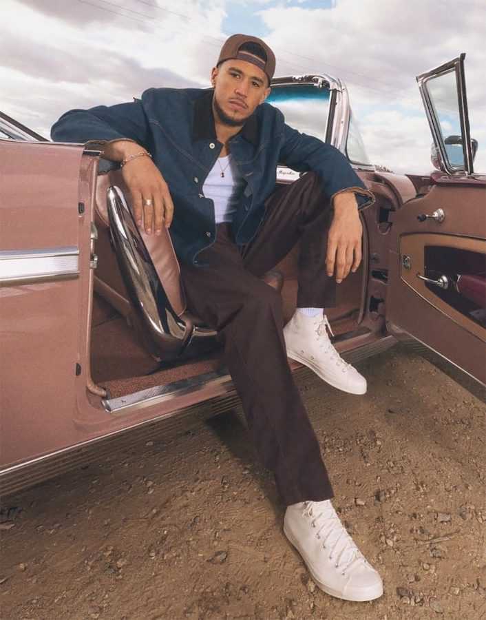 …special edition Chuck 70. Το Converse x Devin Booker Chuck 70 έχει την κλασική αισθητική που συνδυάζεται με τις καινούργιες εκδόσεις του παπουτσιού ενώ το πάνω μέρος είναι άβαφο και το logo έχει την αισθητική μιας πινακίδας κυκλοφορίας.