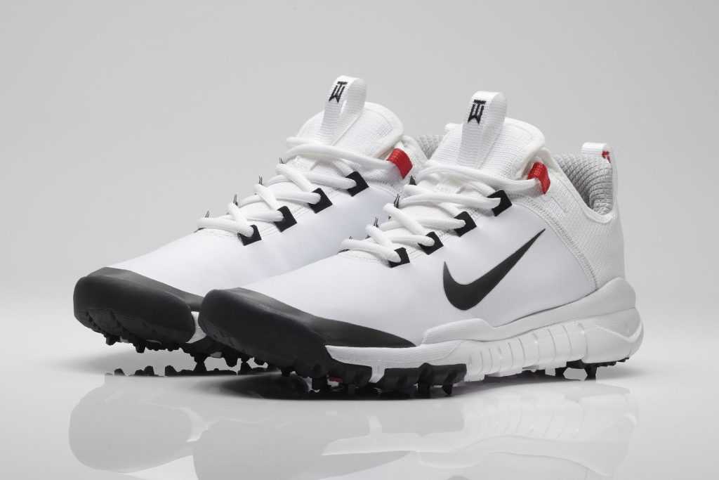 “As the first ever retro Tiger Woods golf shoe, the kicks are a faithful recreation of the originals with the mobile Free sole and a stretch synthetic upper. Providing stability and traction is a Dynamic Fit system with nylon straps as well as six soft spikes. For the branding, grey Swooshes find the instep and outstep, while red TW logos hit the tongues, insoles and heels.”