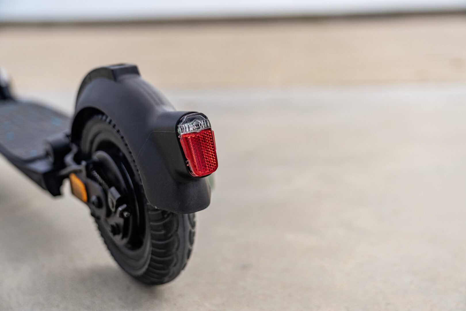 In addition to performance and lifestyle, the focus here is naturally also on safety: thanks to a wide deck with anti-slip coating, a firm and secure two-footed stance is assured. The AMG rhombuses so characteristic of the brand further enhance the appearance of the footboard. Sturdy rubber wheels with a diameter of 20 cm, as well as the individually adjustable suspension front and rear, allow the rider to flit effortlessly over uneven terrain. Thanks to the ergonomically shaped handlebar with telescopic function, the e-scooter can be individually adjusted to any body size. The AMG logo adorns the handlebars on both right and left. An integrated bell allows users to alert others to their presence in city traffic, while the centrally positioned display provides information on speed, charging status and riding mode. The Mercedes star below the front light rounds off the harmonious design. The Mercedes-AMG E-Scooter is braked either by an electric motor brake on the twist grip, with a drum brake at the rear or via the foot brake on the mudguard. Turning the twist grip forward activates the kinetic recuperation system for braking and recharges the battery at the same time. The lights at the front and rear and the reflectors on the sides make even riding in the dark possible at all times.