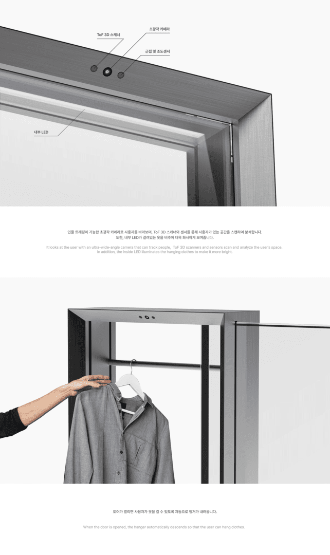Η styling hanger αυτή λοιπόν βλέπει και τον άνθρωπο με μια ευρυγώνια κάμερα που σκανάρει τον κόσμο και έχει και ToF 3D scanner για να αναλύει τον χώρο του χρήστη για να έχει την καλύτερη θέαση.