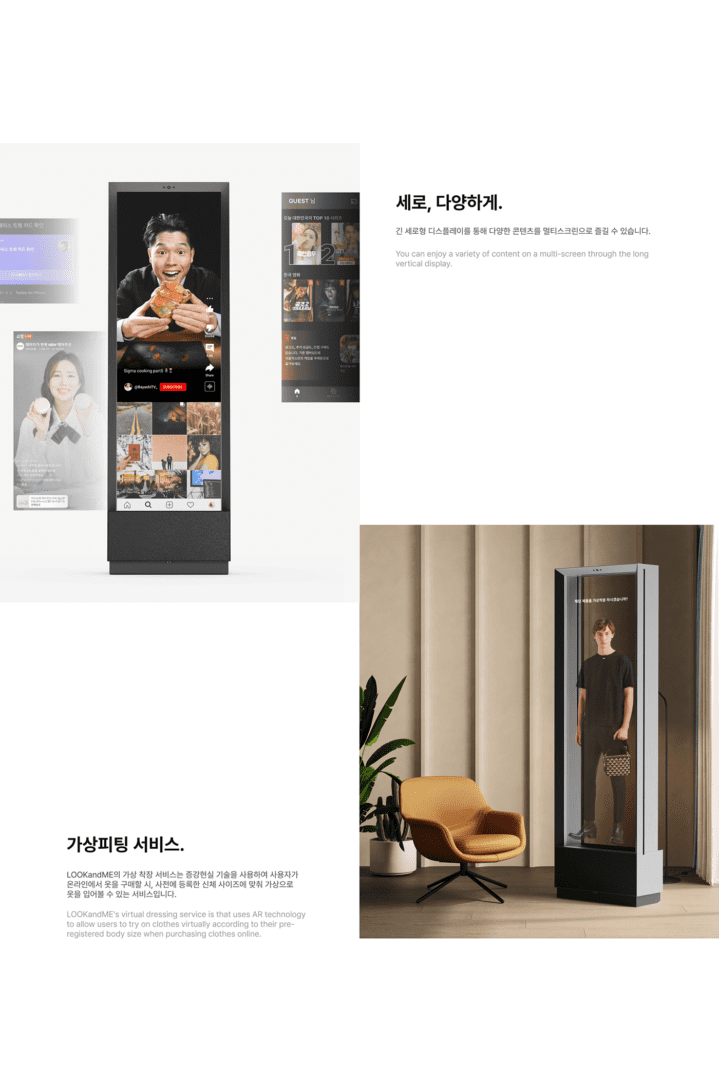 Αυτή η συσκευή είναι αποτέλεσμα του πως η Generation Z που γεννήθηκε στα ψηφιακά ορίζει τη ζωή της και τα social media. Για το λόγο αυτό, το μηχανάκι βοηθάει να καταναλώσεις vertical content από Instagram, YouTube και Tik Tok και έτσι το LOOKandME βασίζεται σε ένα τέτοιο concept ζωής.