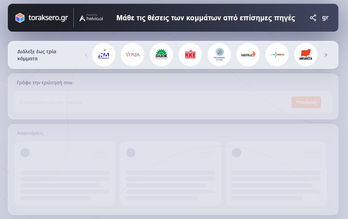 Με αυτόν τον στόχο, μια ομάδα επιστημόνων έστησε ένα εργαλείο με την επωνυμία toraksero.gr, έναν «ΑΙ βοηθό για τα προγράμματα των κομμάτων που με μερικά “ κλικ” δημιουργεί ένα ψηφιακό debate των θέσεων των κομμάτων που θα συναντήσει ο ψηφοφόρος στο παραβάν πίσω από την κάλπη» εξήγησε, μιλώντας στον ραδιοφωνικό σταθμό του ΑΠΕ-ΜΠΕ «Πρακτορείο 104.9FM» ο Σταύρος Βάσσος, ειδικός στην Τεχνητή Νοημοσύνη με περισσότερα από 20 χρόνια εμπειρίας στον ακαδημαϊκό χώρο, την έρευνα και το ΑΙ.