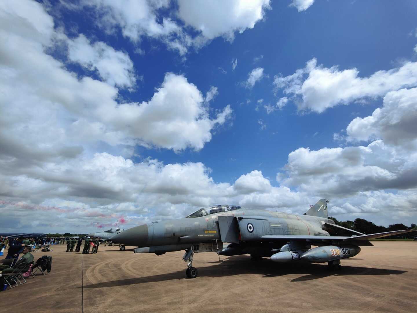 Οι λάτρεις της Αεροπορίας που ήθελαν να φωτογραφηθούν και να δουν από κοντά το άριστα συντηρημένο θρυλικό δικινητήριο μαχητικό που πέταξε από την Ελλάδα μέχρι το Ηνωμένο Βασίλειο για να συμμετέχει στην μεγάλη ευρωπαϊκή γιορτή της Αεροπορίας ήταν μάλιστα περισσότεροι στο σταντ της 338ης Μοίρας παρά σε παρακείμενα πολύ πιο σύγχρονα αεροσκάφη 4ης και 5ης γενιάς, τα… εγγόνια και δισέγγονα δηλαδή του ελληνικού F-4 Phantom II.