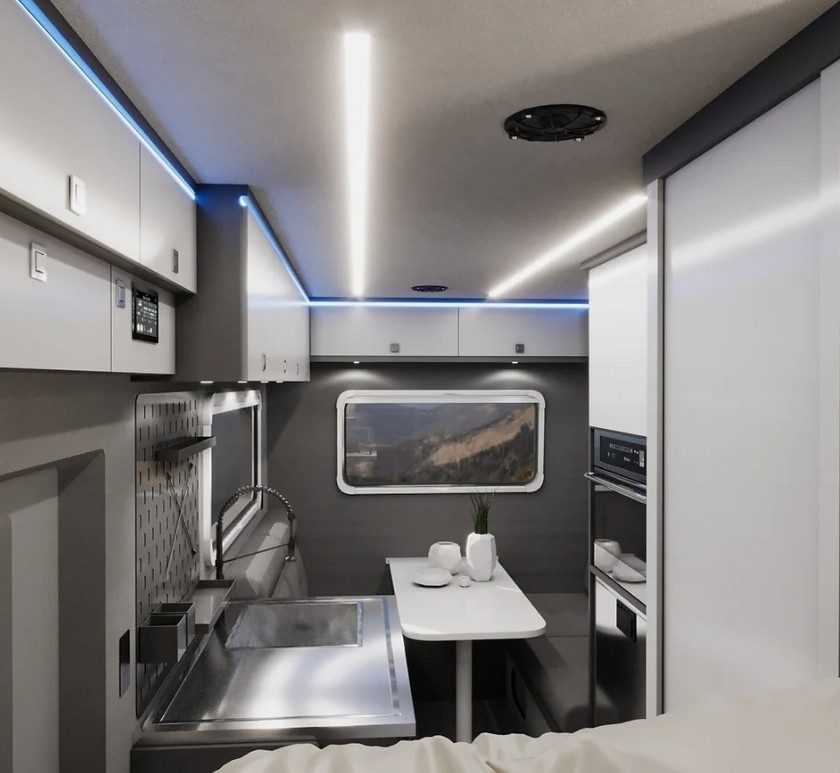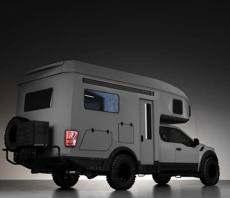 Εξωτερικά το κέλυφος είναι από fiberglass ενώ υπάρχει και 50″ μεγέθους LED light bar, LED φως στα πλαϊνά, ηχεία και σκάλα για πρόσβαση στην οροφή.