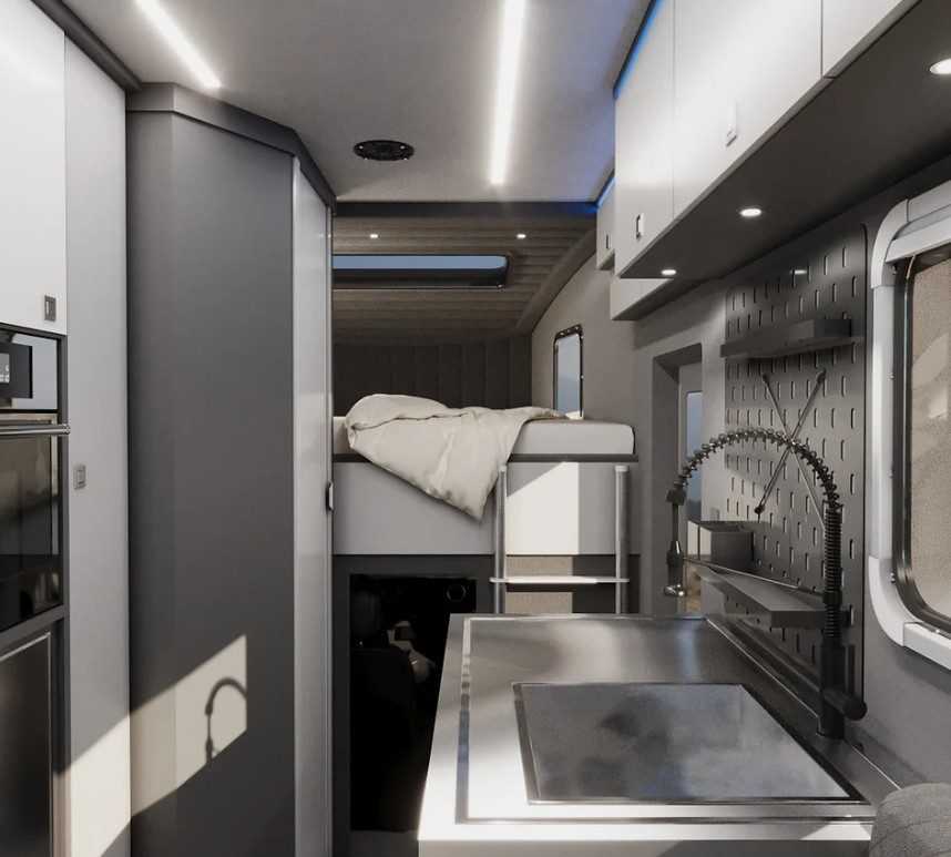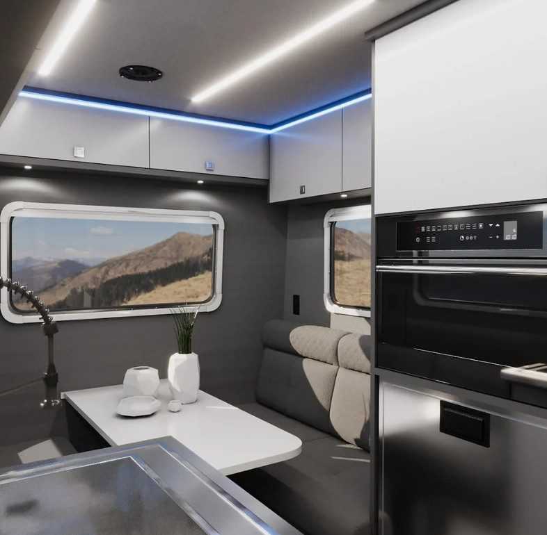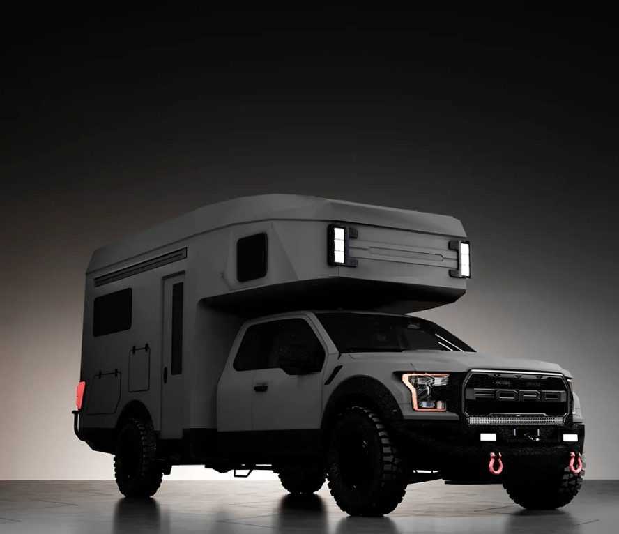 Εξωτερικά το κέλυφος είναι από fiberglass ενώ υπάρχει και 50″ μεγέθους LED light bar, LED φως στα πλαϊνά, ηχεία και σκάλα για πρόσβαση στην οροφή.