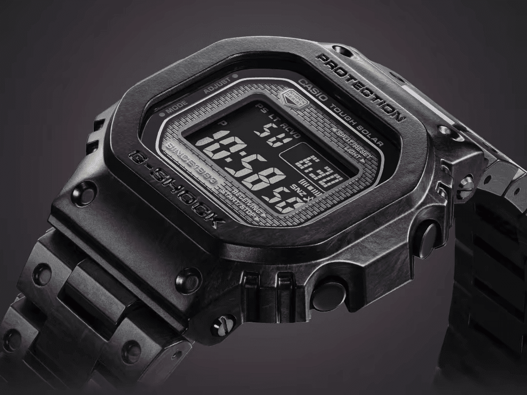 The evolution of the G-SHOCK since the debut of the very first DW-5000 is a story of constantly advancing functionality, performance, and materials — all while staying true to the beloved design of the original. The 40th Anniversary Carbon Edition takes up this quest with three different carbon materials used for the bezel, the band, and the monocoque case.