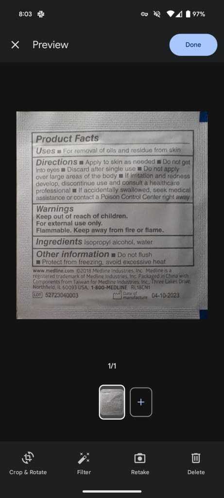Crop & Rotate: Automatic crop, No crop, Rotate