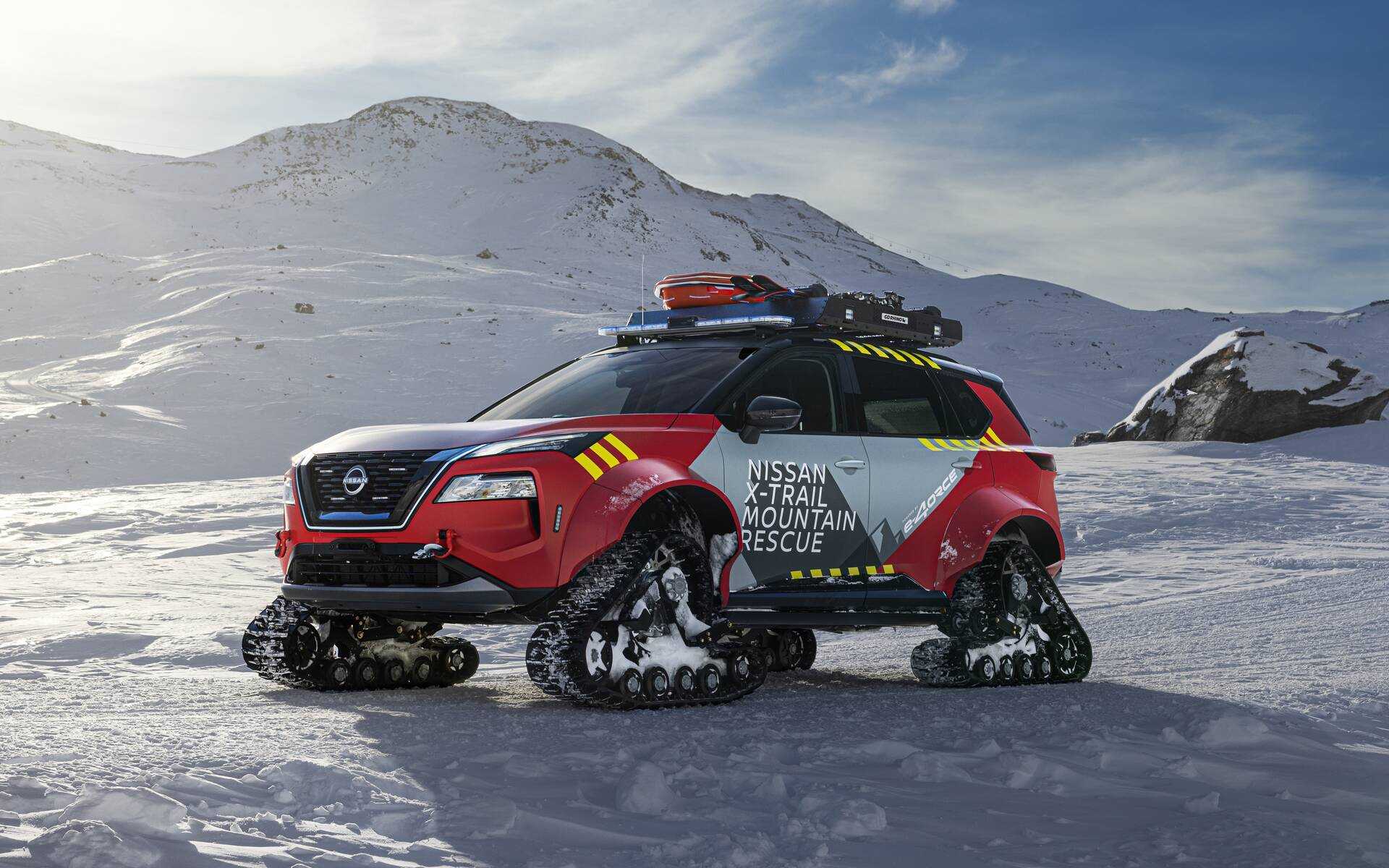 Το μοντέλο έχει και ειδική σχάρα οροφής για φορείο, φτυάρια χιονιού, υπάρχει μπάρα με προβολείς έχουν στην οροφή του ειδικού αυτού X-Trail, τα φτερά εμπρός και πίσω είναι πιο φαρδιά αφού έχεις και ερπύστριες και μπροστά έχεις βαρούλκο όπως και γάντζο ρυμούλκησης έχει προστεθεί στους δύο προφυλακτήρες.