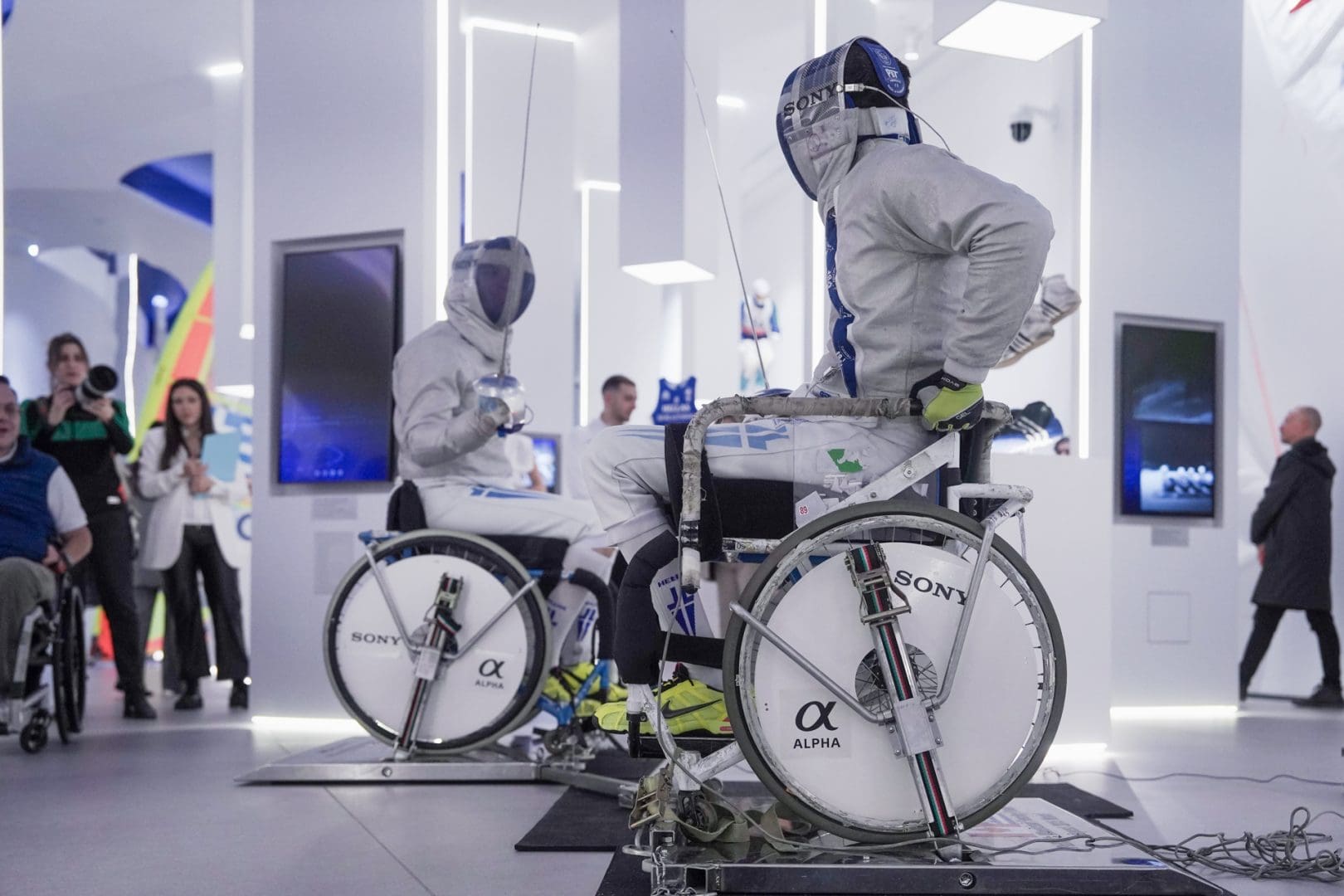 Παράλληλα, οι Βασίλης Ντούνης και Πάνος Τριανταφύλλου, μέλη της Εθνικής Ομάδας Ξιφασκίας με Αμαξίδιο, Παγκόσμιοι Πρωταθλητές και Παραολυμπιονίκες, πραγματοποίησαν μία εντυπωσιακή επίδειξη ξιφασκίας με αμαξίδιο. Οι παρευρισκόμενοι μαγεύτηκαν από την ένταση της μάχης και τις αστραπιαίες και ακριβείς κινήσεις των δύο αθλητών, τις οποίες και μπόρεσαν να απαθανατίσουν και οι ίδιοι δοκιμάζοντας τις νέες Alpha 9 III, με το νέο full-frame αισθητήρα με καθολικό κλείστρο που επιτρέπει την καταγραφή εικόνων με ταχύτητα έως και 120 fps. Το αποτέλεσμα εντυπωσίασε, αφού καταγράφηκαν φωτογραφίες εξαιρετικής ευκρίνειας, οι οποίες αποτύπωναν τις ταχύτατες κινήσεις των δύο αθλητών με ακρίβεια και χωρίς καμία παραμόρφωση.