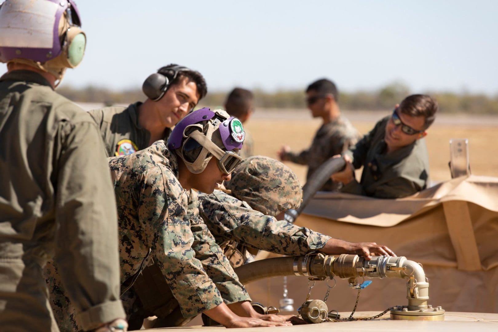 United States Marine Corps Marines, assigned to Marine Wing Support Squadron 171, set up a forward arming and refuelling point (FARP) at RAAF Base Curtin, Western Australia, during Exercise Pitch Black 2022. *** Local Caption *** Exercise Pitch Black is the Royal Australian Air Force�s largest and most complex Large Force Employment exercise. Pitch Black 2022 is being conducted at RAAF Bases Darwin, Tindal and Amberley from 19 August to 08 September 22. This year�s exercise will host up to 2500 personn
