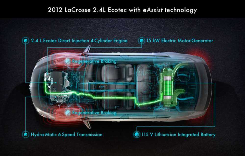 Το Buick LaCrosse Hybrid είναι ένα ακόμη δημιούργημα που έβγαλε από την φαρέτρα της η General Motors για την αγορά των υβριδικών. Με την τεχνολογία eAssist technology διαθέτει μια μπαταρία 115-volt ιόντων λιθίου και ένα 15-kilowatt ηλεκτρικό μοτέρ για να αυξάνεται η οικονομία στην κατανάλωση κατά 25% σε σύγκριση με το σημερινό τετρακύλινδρο LaCrosse. Αυτό βγάζει 16 χιλιόμετρα το λίτρο σε μεικτή χρήση… Κατά την επιτάχυνση το ηλεκτρικό μοτέρ αποδίδει 15 ίππους και 79 λίβρες ροπής για να κινηθεί το LaCrosse ενώ το eAssist φροντίζει να γίνει ομαλά η μετάβαση...