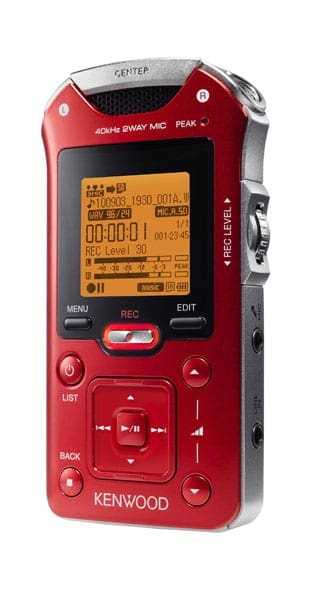 Ονομάζεται “MGR-Ε8” και είναι ένας εγγραφέας ήχου. Το άγριο μωρό της Kenwood γράφει στα 96kHz/24bit έως 320kbps σε WAV και MP3 καταγραφής. Έχει τρία μικρόφωνα τα δύο τοποθετημένα σε γωνία 120 μοιρών αριστερά και δεξιά και το έτερο στο κέντρο μιας κατεύθυνσης μικρόφωνο. Γράφει σε 2GB εσωτερική μνήμη flash ενώ δέχεται microSDHC κάρτες (μέχρι 16GB), κάρτα microSD (μέχρι 2GB) στις αντίστοιχες υποδοχές. Κάνετε και το μοντάζ σας με το λογισμικό “BeatJam» ενώ με την Ιόντων-Λιθίου μπαταρία έχει αυτονομία περίπου 28 (αρχεία WAV: 44.1kHz/16bit) Εντάξει, φαίνεται να κάνει καλά τη δουλειά...