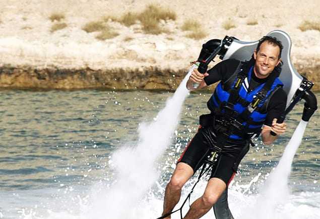 Τα Jetpacks είναι ένα όνειρο από την εποχή του “Thunderball” και την θρυλική τότε πτήση του Σόν Κόνερι…. Δυστυχώς το βάρος, το κόστος, η θερμοκρασία και άλλοι λόγοι μας έχουν κάνει να… προσγειωθούμε. Τώρα εκείνοι από εσάς – σε… παγκόσμια κλίκαμα κύριε Αμπράμοβιτς το λέμε εδώ στο gadgetfreak…- που μπορείτε θα καταλάβετε πως τουλάχιστον υπάρχει ελάχιστος κίνδυνος με το Jetlev Flyer ($99,500). Αυτό το τρελό, με χρήση νερού backpack χρησιμοποιεί ένα μοτέρ 250hp και μια δεξαμενή καυσίμου και σε επίπεδο θάλασσας στέλνει νερό κάτω στην επιφάνεια. Με μέγιστη ταχύτητα 40 χλμ/ώρα...