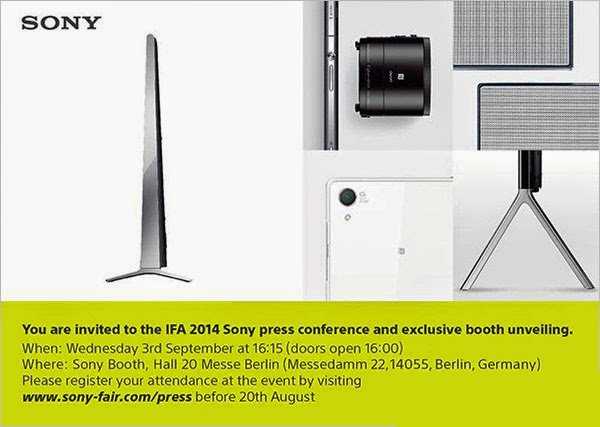 …με την πρόσκληση των δημοσιογράφων να φτάνει ξαφνικά εκεί έξω. Η Sony press invite για τη συνέντευξη τύπου της ιαπωνικής εταιρίας στην IFA 2014 είναι εκεί έξω και teasesαρει μερικές συσκευές ακόμη και έτσι.